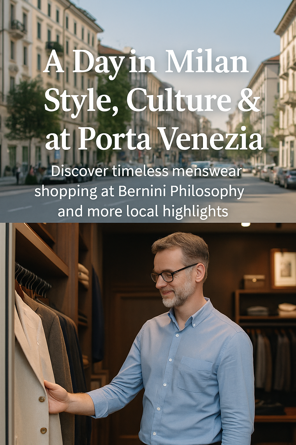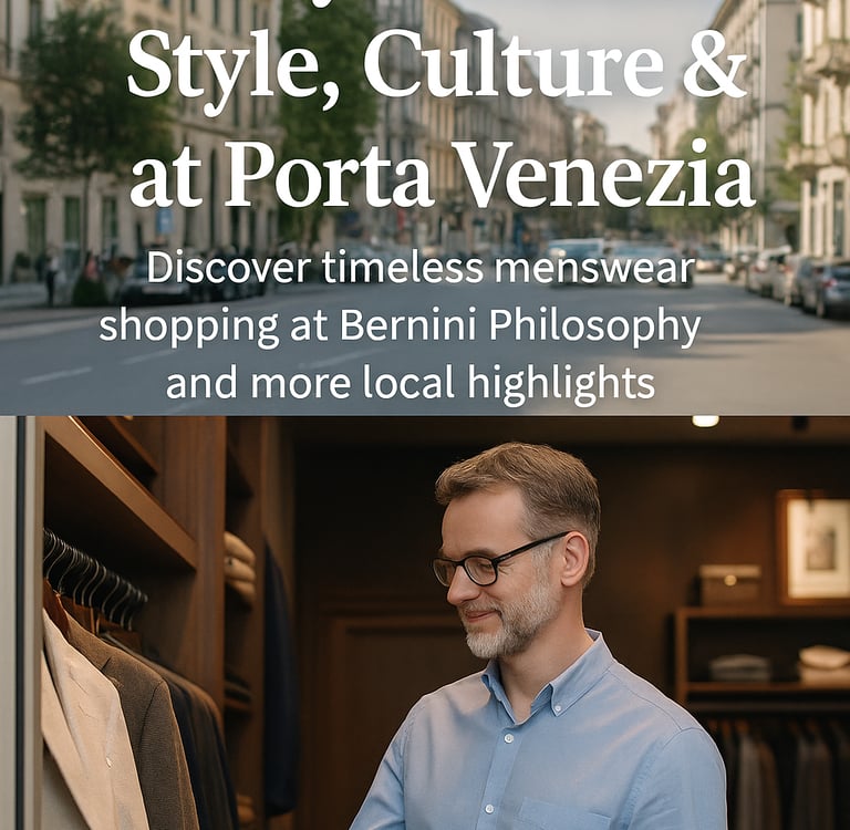 Located between the historic center and Città Studi, Porta Venezia is a vibrant mix of art, architecture, international cuisine, and of course, fashion. This itinerary is designed for the modern man in search of elegance, comfort, and quality — and includes an essential stop at Bernini Philosophy, a boutique offering fine Italian menswear just steps away from Milan’s cultural heart.